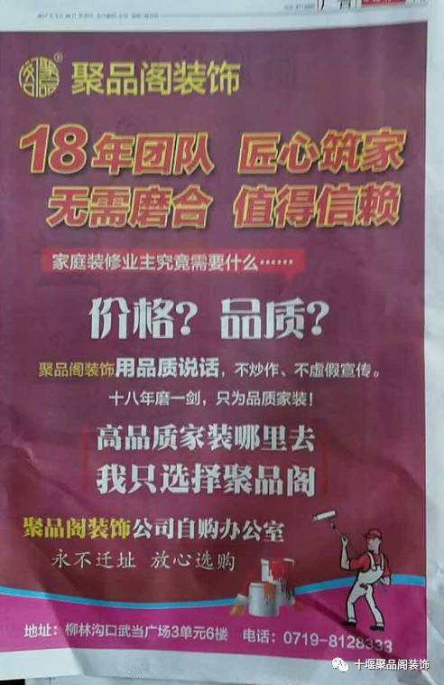 装修的业主你真的要明白:装修你真正要的是装修的品质!而不是赠送的空调、洗衣机 、电视 、手机什么的!家装是技术性强,技能要求高,没有2一3年团队是不成熟的!同时装修是传统行业,竞争激烈 利润己非常低!价值决定着价格,所以各位高品质的家装一定需要价格作保证的!所谓的低价:要么是营销层面的低价,要么就是通过偷工减料来完成了!总之 ,天上不会掉馅饼, 也没有人会做亏本生意!低价一定没有高品质!赠送羊毛出在羊身上!说点真话,但愿没有得罪同行,真诚的为你推荐十堰聚品阁建筑装饰公司!